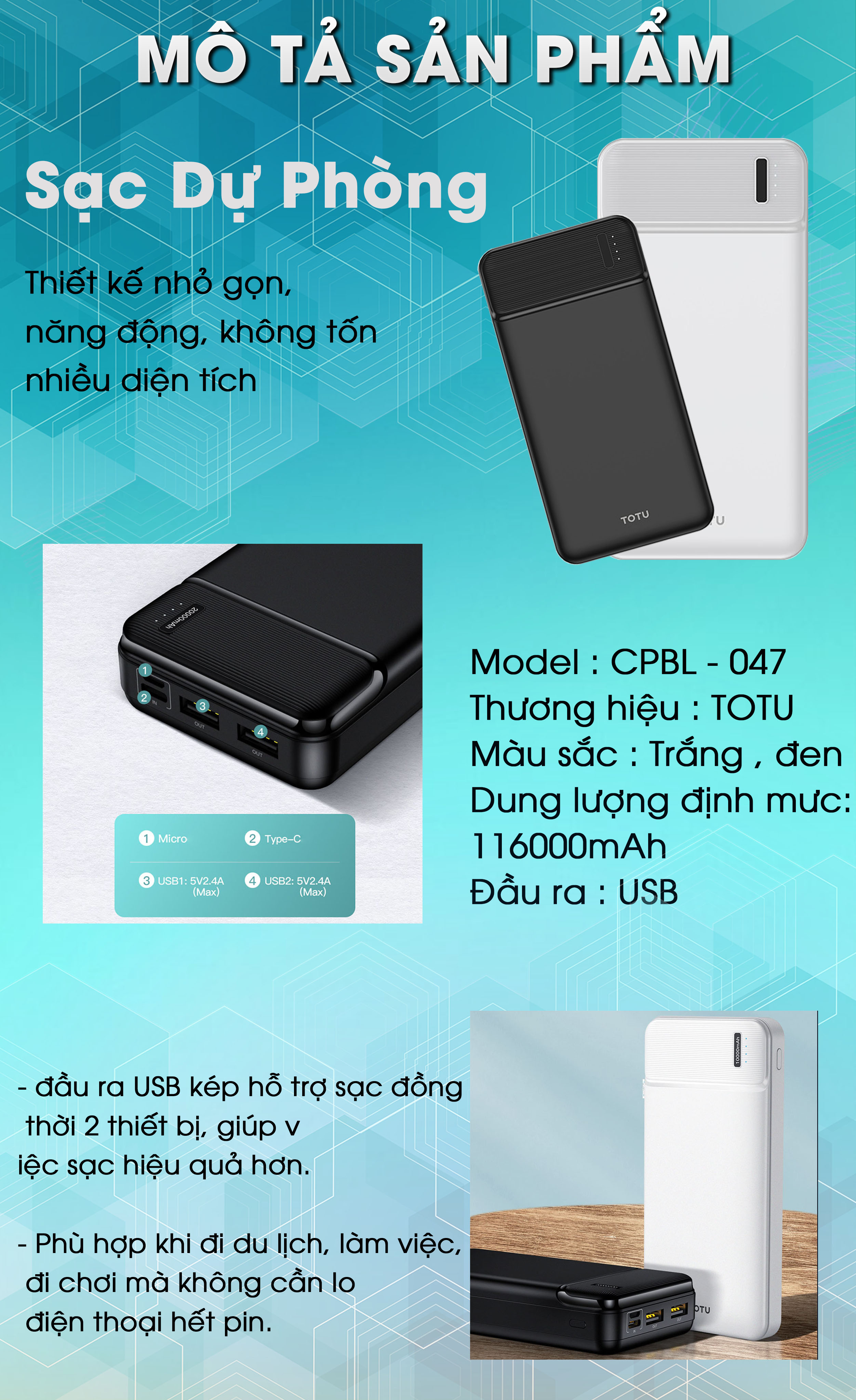 MÔ TẢ SẢN PHẨM Sạc dự phòng CPBN-047